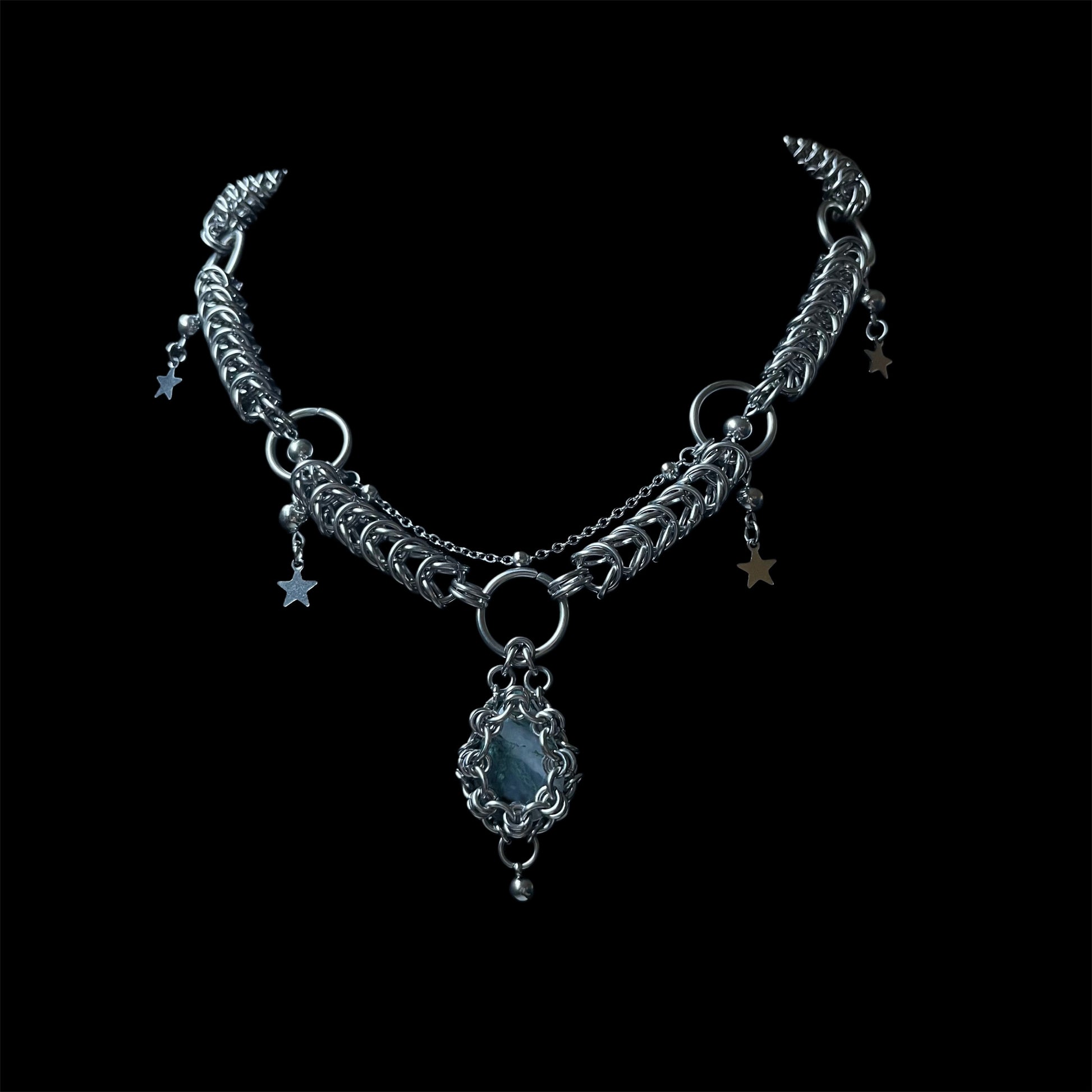 Handmade chainmail necklace! Stainless steel !! Different crystal options available. Please note this is a made to order necklace, shipping between 1-2 weeks.